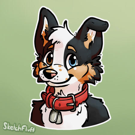 Includes the head, shoulder, arms, and torso (and tail). An in-between of the headshot and fullbody. Comes with simple background.